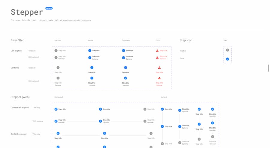 The Design Kits contain many of the Material UI components with states, variations, colors, typography, and icons.